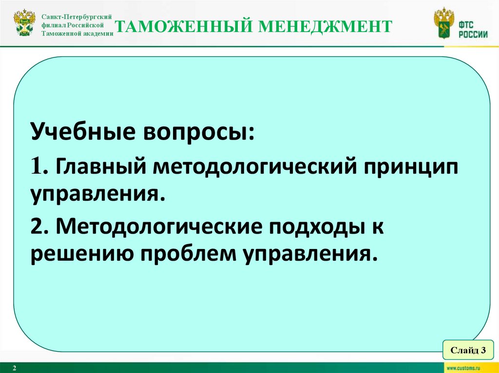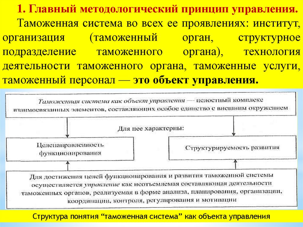 1. Главный методологический принцип управления.Таможенная система во всех ее проявлениях: институт,