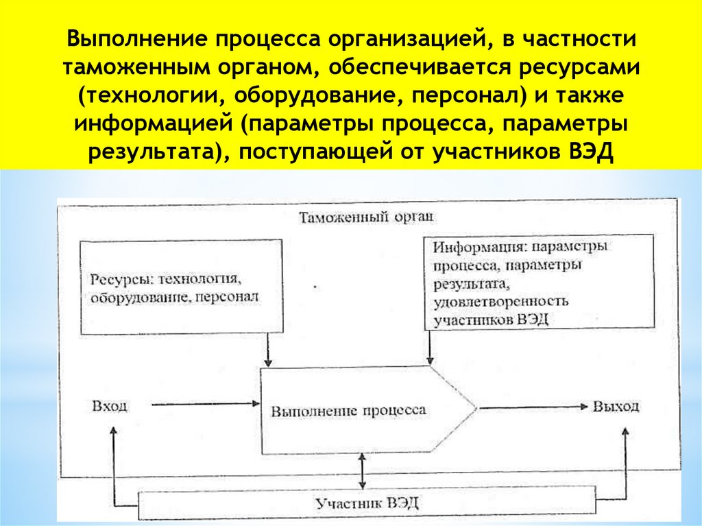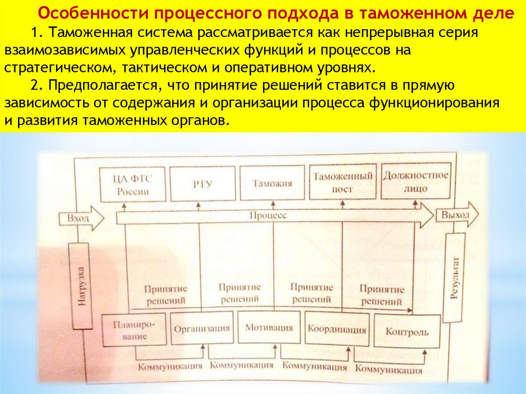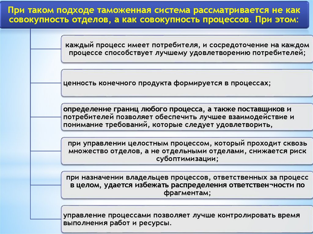 При таком подходе таможенная система рассматривается не каксовокупность отделов, а как совокупность процессов. При этом: