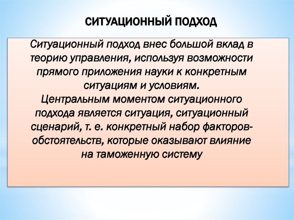 СИТУАЦИОННЫЙ ПОДХОДСитуационный подход внес большой вклад в