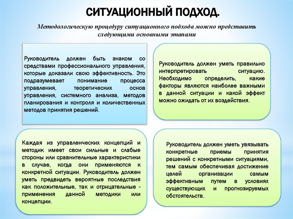 СИТУАЦИОННЫЙ ПОДХОД.Методологическую процедуру ситуационного подхода можно представить