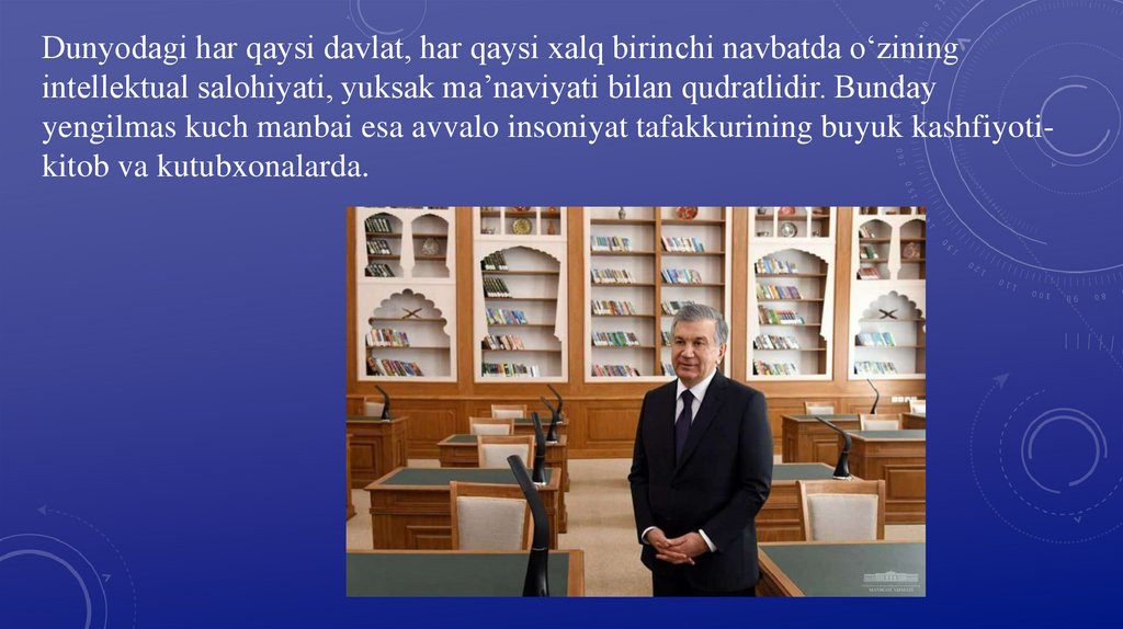 Dunyodagi har qaysi davlat, har qaysi xalq birinchi navbatda o‘ziningintellektual salohiyati, yuksak ma’naviyati bilan qudratlidir. Bunday