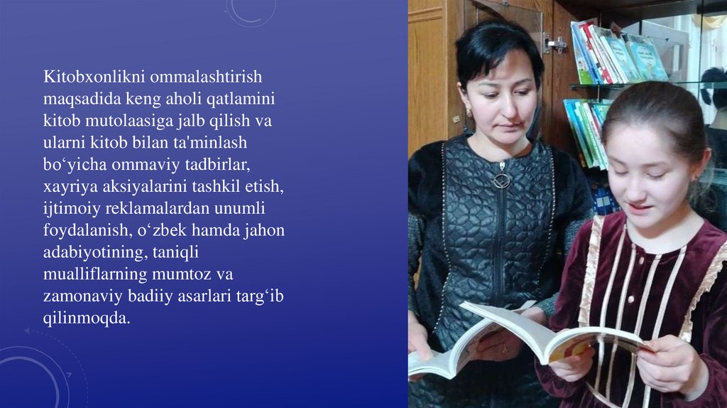 Kitobxonlikni ommalashtirishmaqsadida keng aholi qatlamini