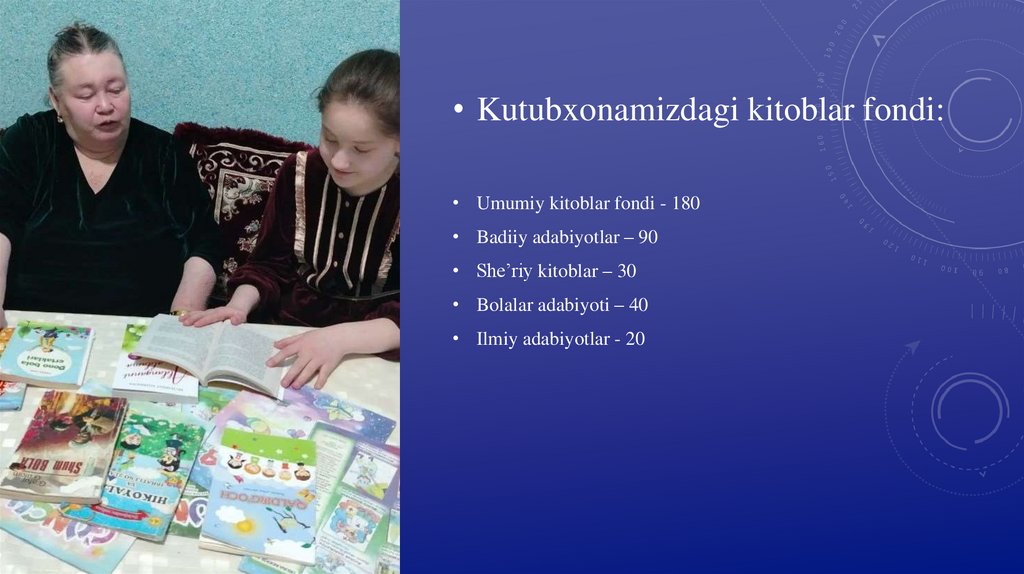 • Kutubxonamizdagi kitoblar fondi:• Umumiy kitoblar fondi - 180