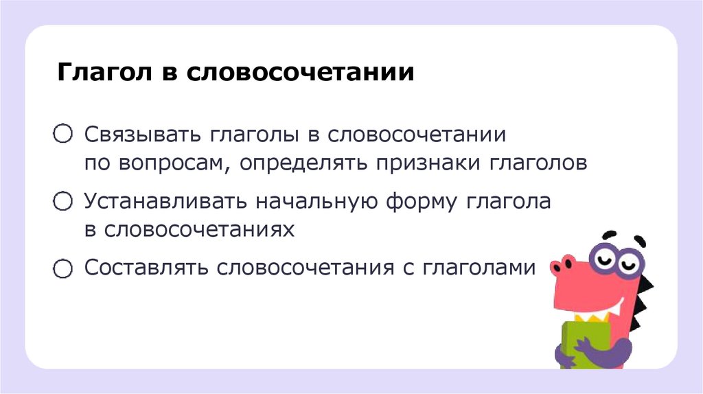 Глагол в словосочетанииСвязывать глаголы в словосочетании