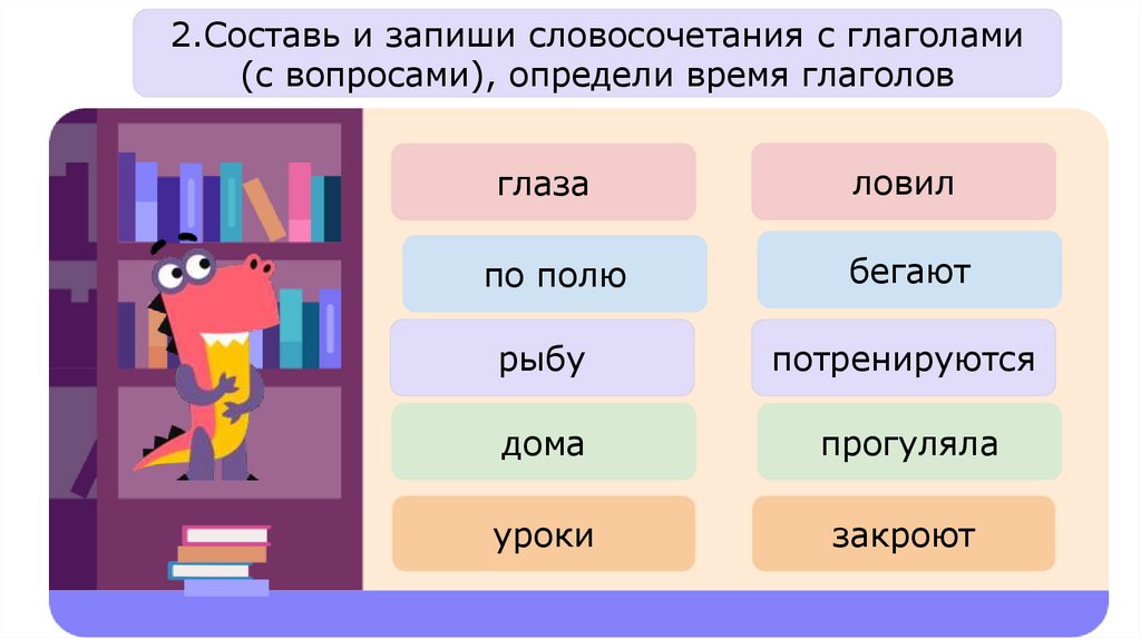 2.Составь и запиши словосочетания с глаголами(с вопросами), определи время глаголов