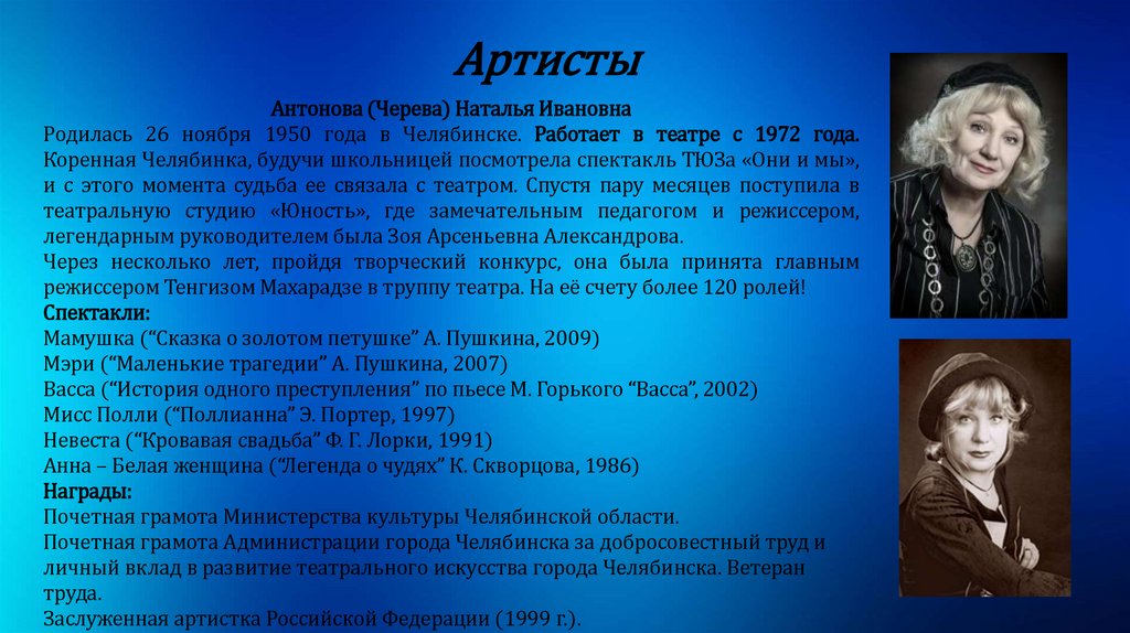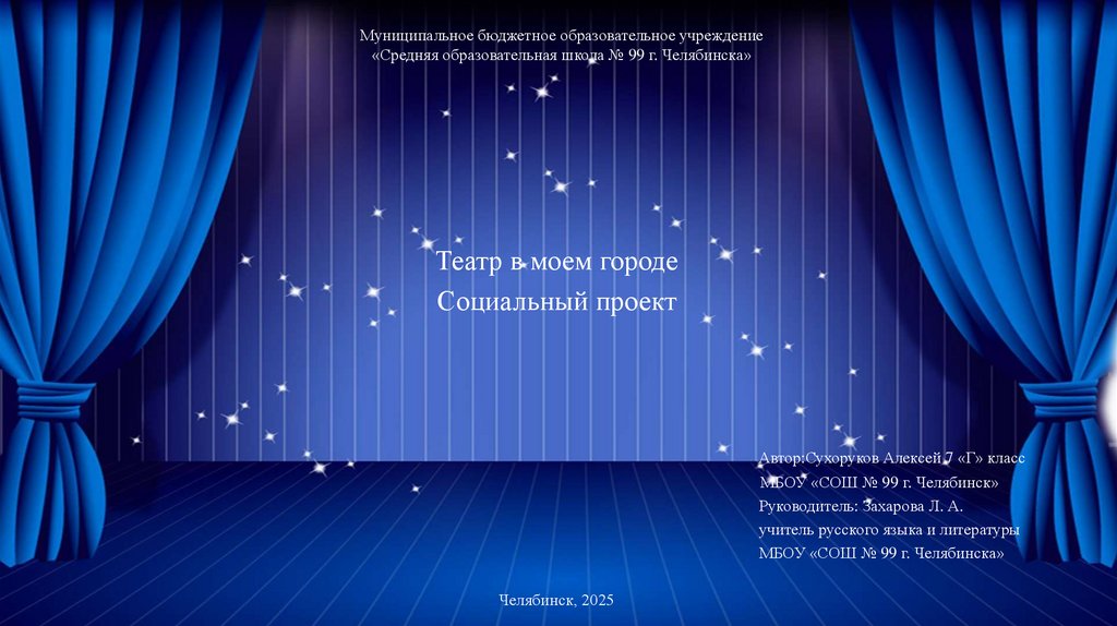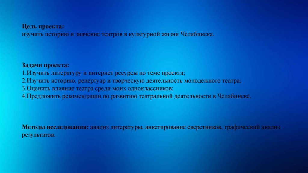 Цель проекта:изучить историю и значение театров в культурной жизни Челябинска.
