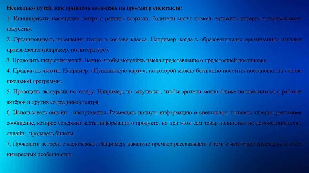 Несколько путей, как привлечь молодёжь на просмотр спектакля:Несколько путей, как привлечь молодёжь на просмотр спектакля: