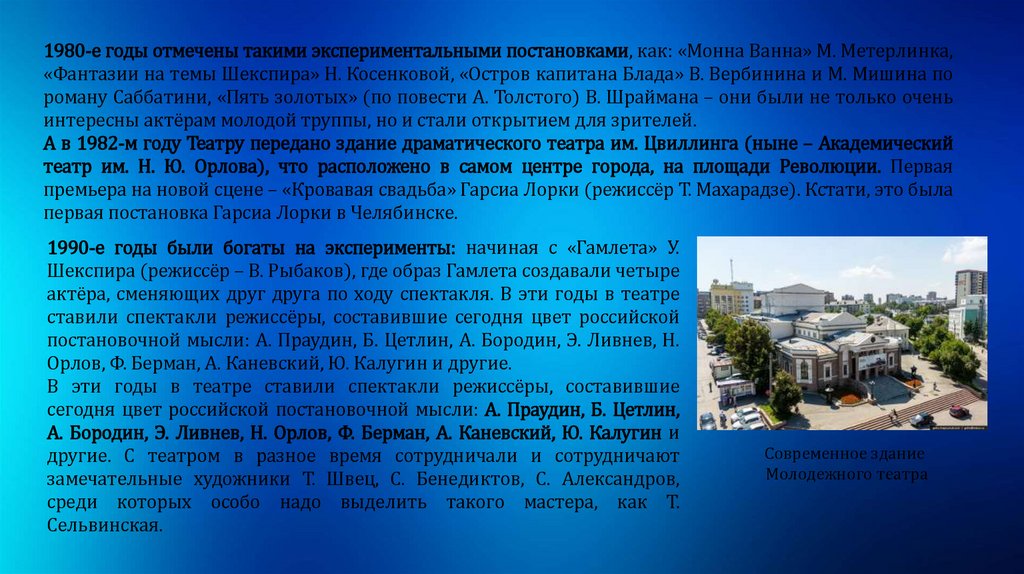 Расцвет челябинского ТЮЗа неразрывно связан с именем Т. Махарадзе: