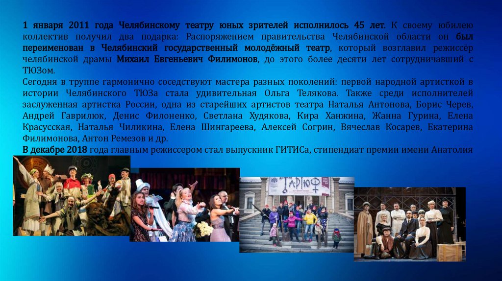 Андрей Михайлович ГаврилюкВ Челябинском молодежном театре А. М. Гаврилюк работает с 2001 года.