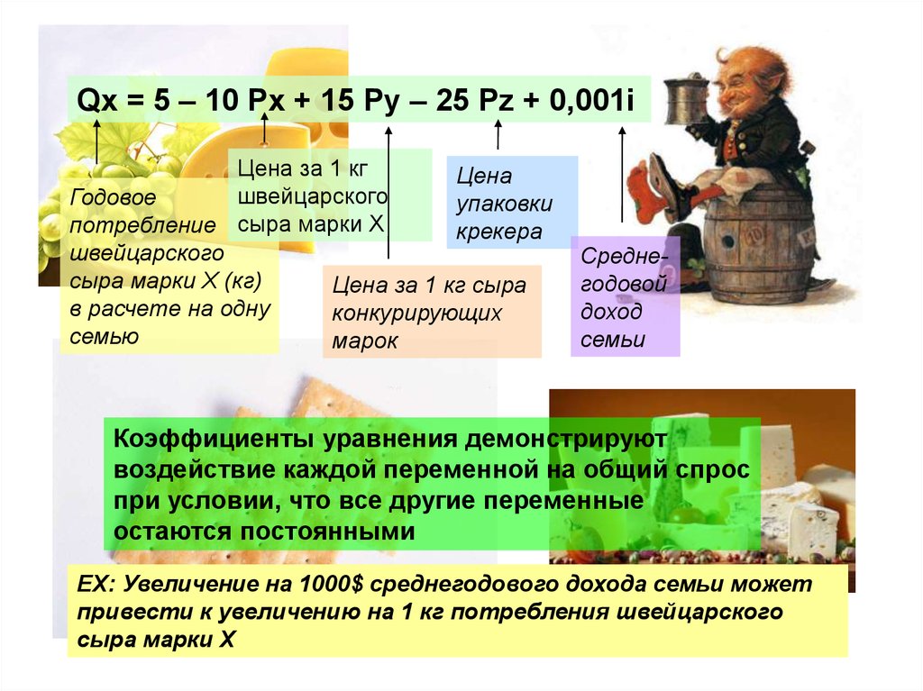 Базисная функция спроса устанавливает зависимость между требуемымколичеством и всеми переменными, оказывающими воздействие на спрос
