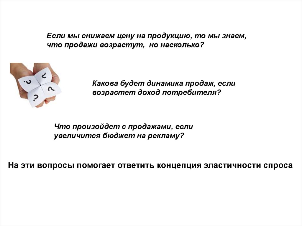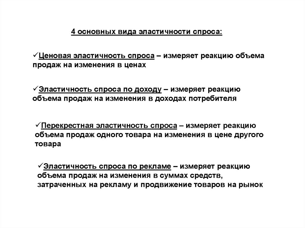 Измерения эластичности по отношению к изменениям вцене, доходе или ценах на другую продукцию могут