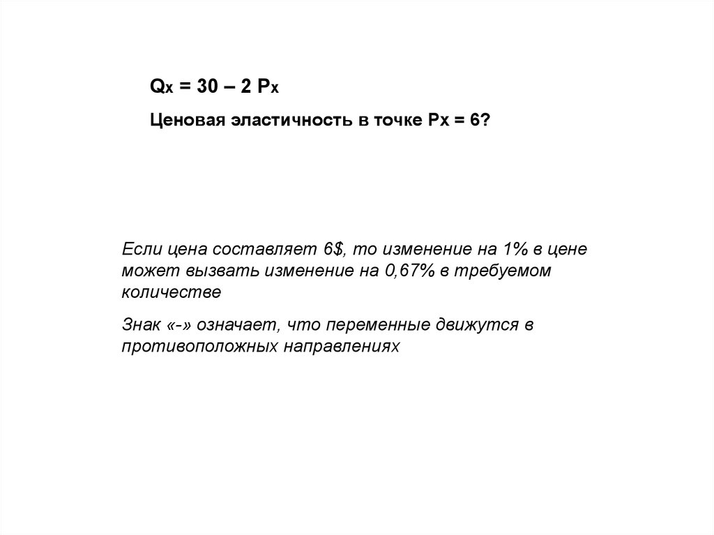 Qx = 30 – 2 PxЦеновая эластичность в точке Рх = 6?