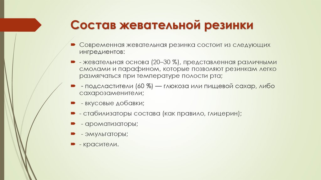 Состав жевательной резинкиСовременная жевательная резинка состоит из следующих