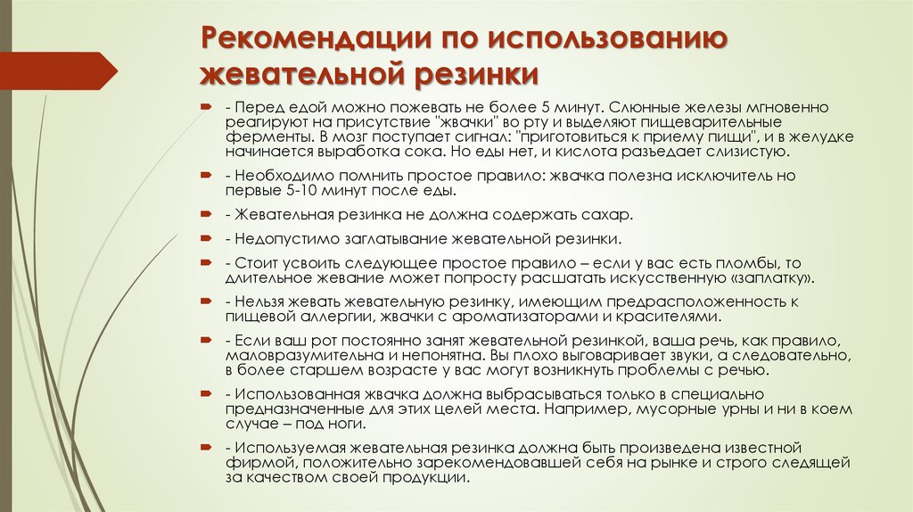 - Необходимо помнить простое правило: жвачка полезна исключитель но