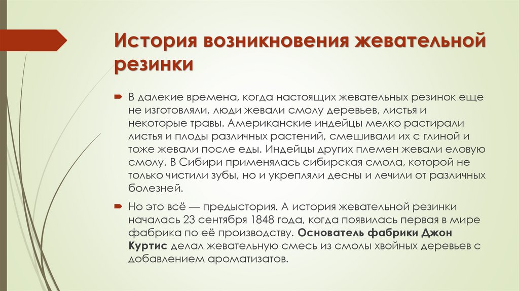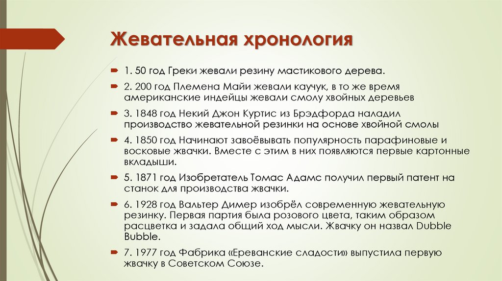 Жевательная хронология1. 50 год Греки жевали резину мастикового дерева.