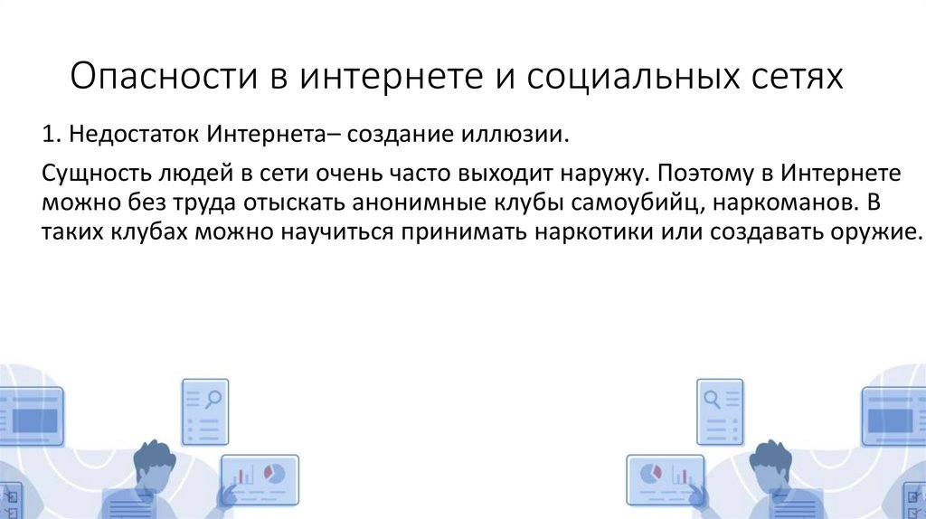 Опасности в интернете и социальных сетях1. Недостаток Интернета– создание иллюзии.