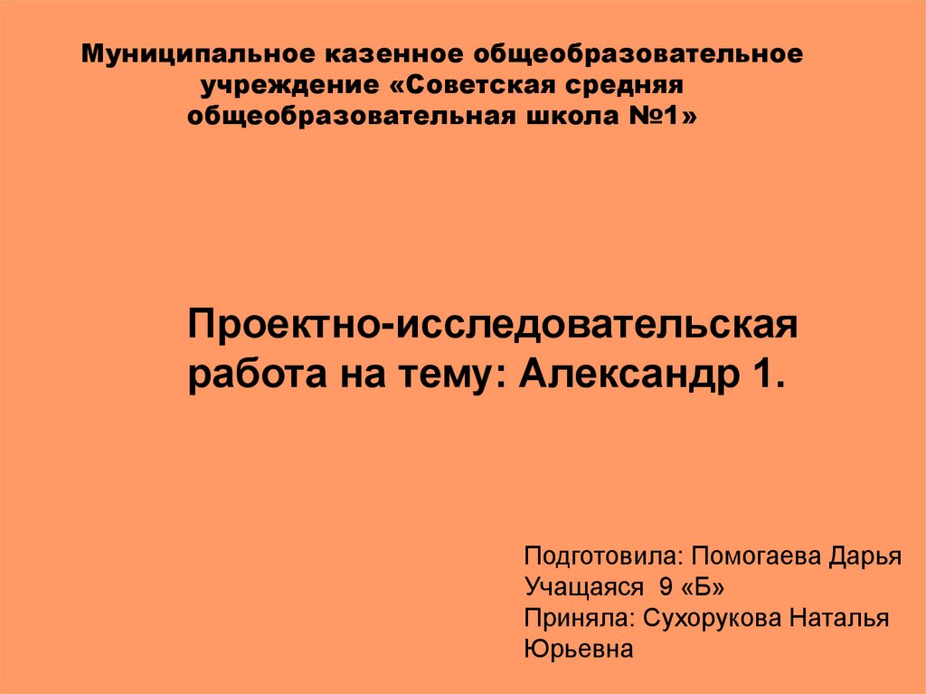 Александр 1. Проектно-исследовательская работа