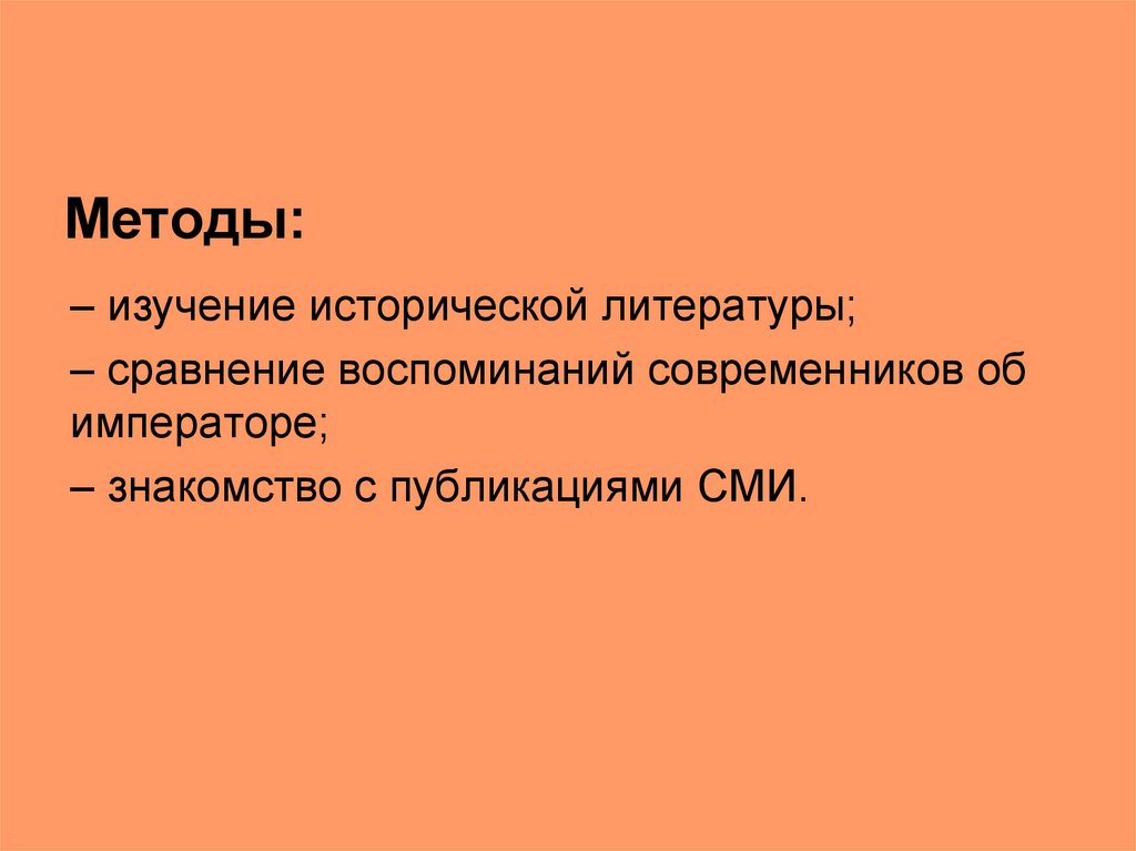 Методы:– изучение исторической литературы;