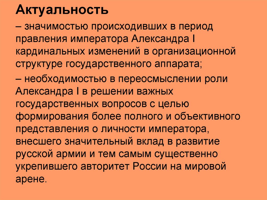 Актуальность– значимостью происходивших в период