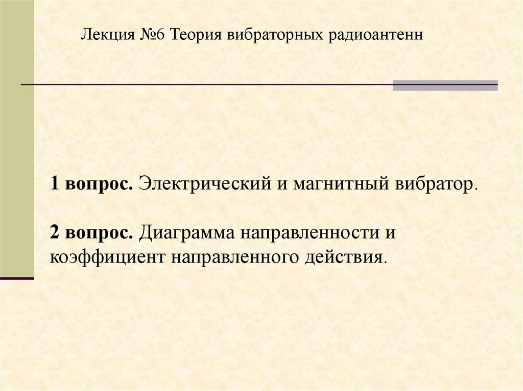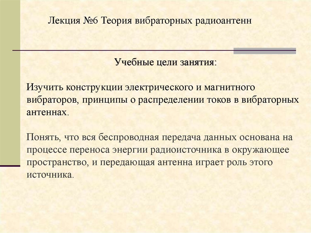Лекция №6 Теория вибраторных радиоантеннУчебные цели занятия:
