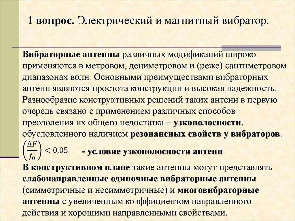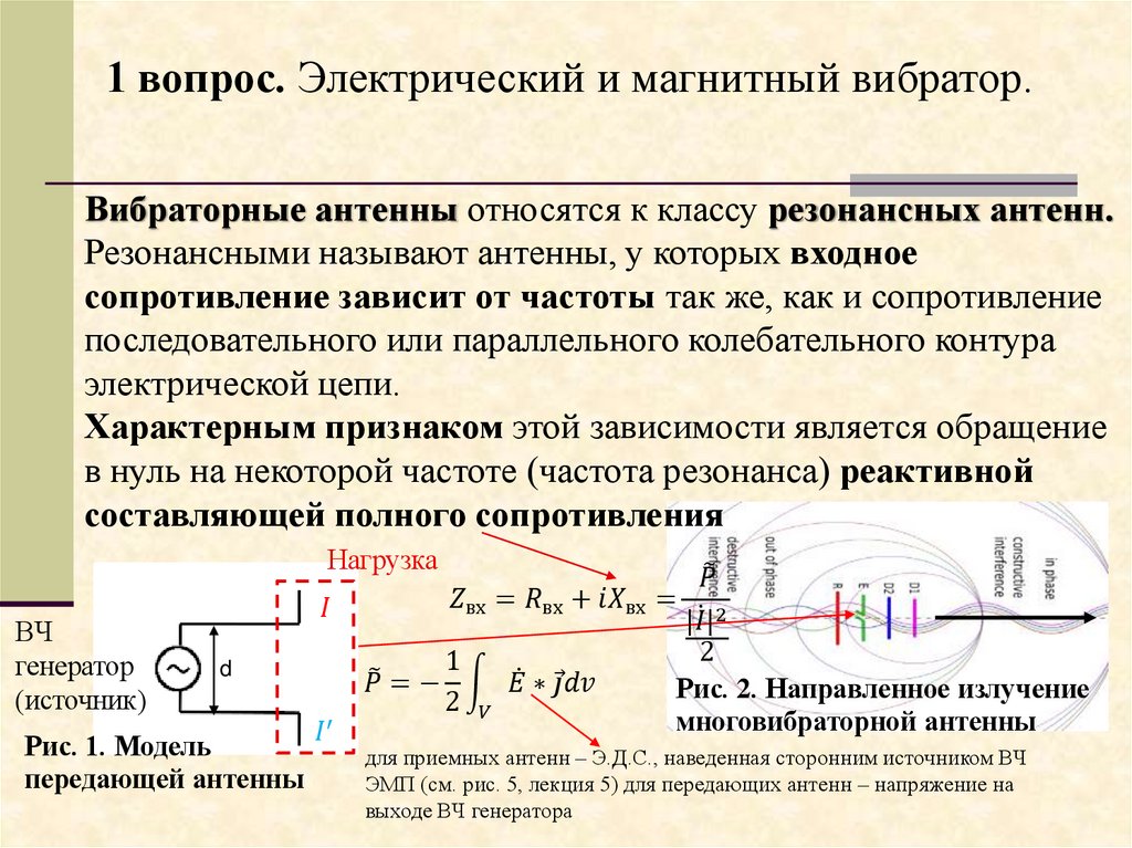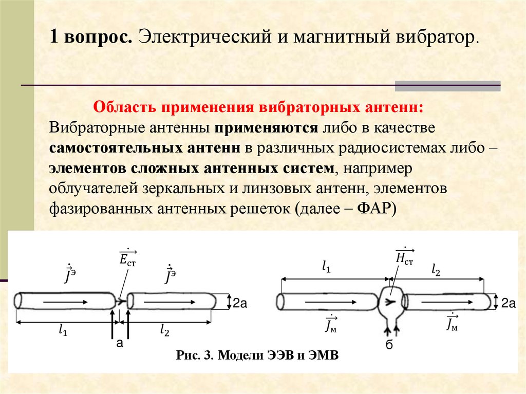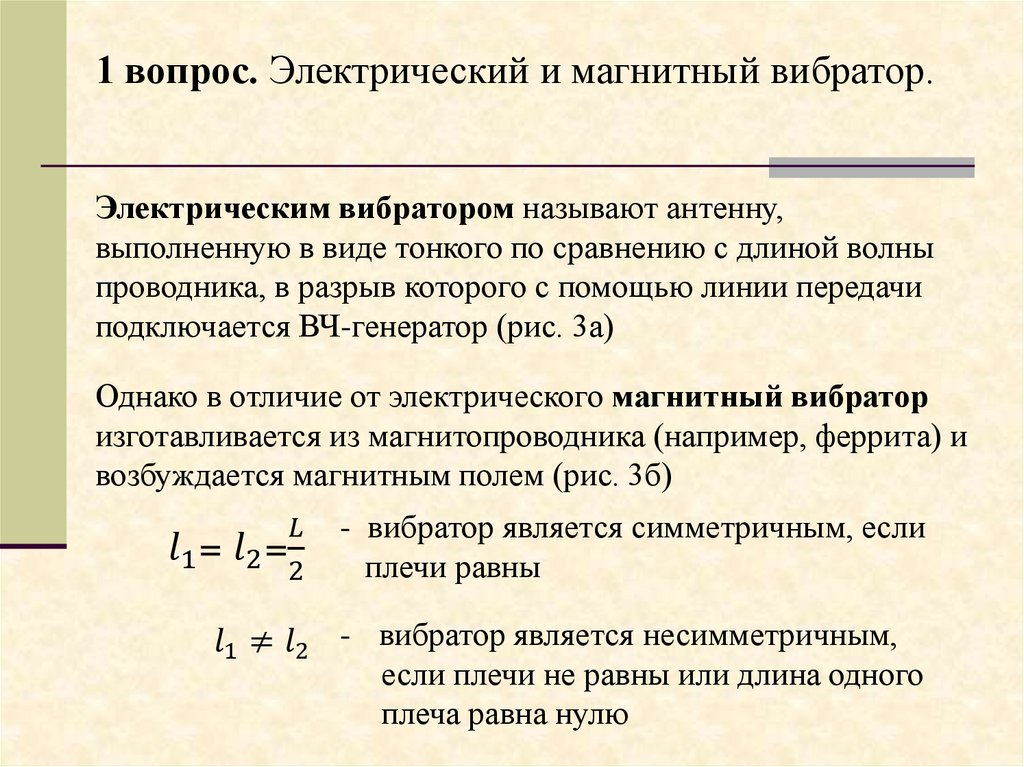 1 вопрос. Электрический и магнитный вибратор.Вибраторные антенны различных модификаций широко