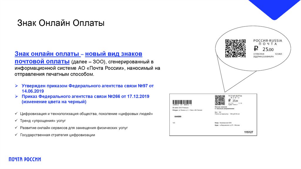 почтовой оплаты (далее – ЗОО), сгенерированный в