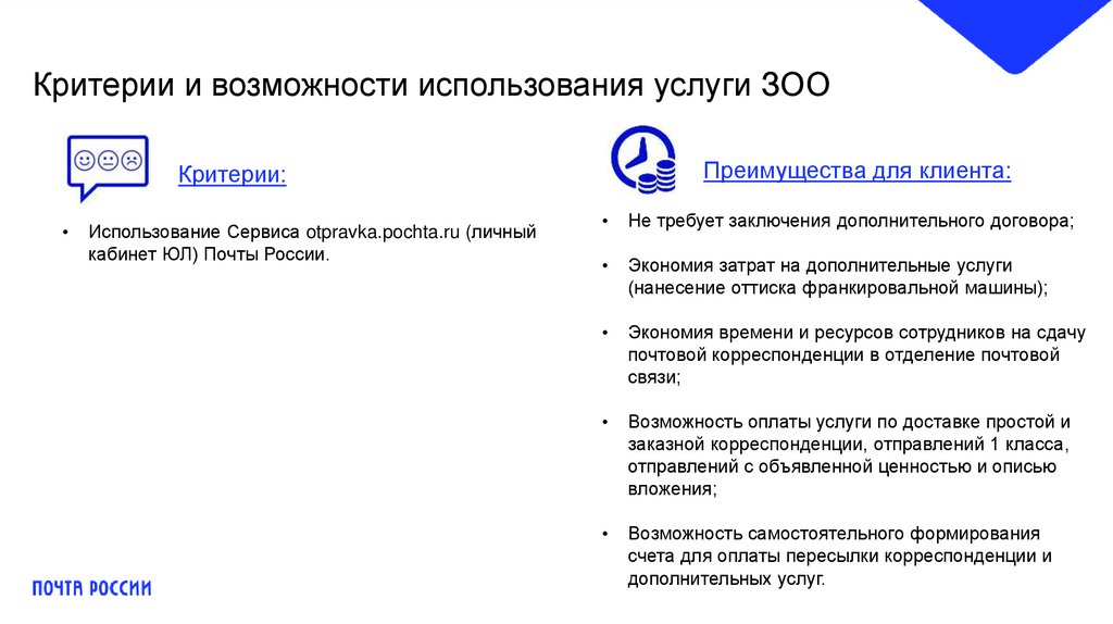 Критерии и возможности использования услуги ЗООПреимущества для клиента: