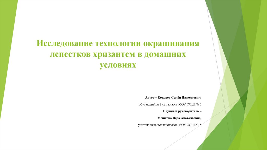 Исследование технологии окрашиваниялепестков хризантем в домашних