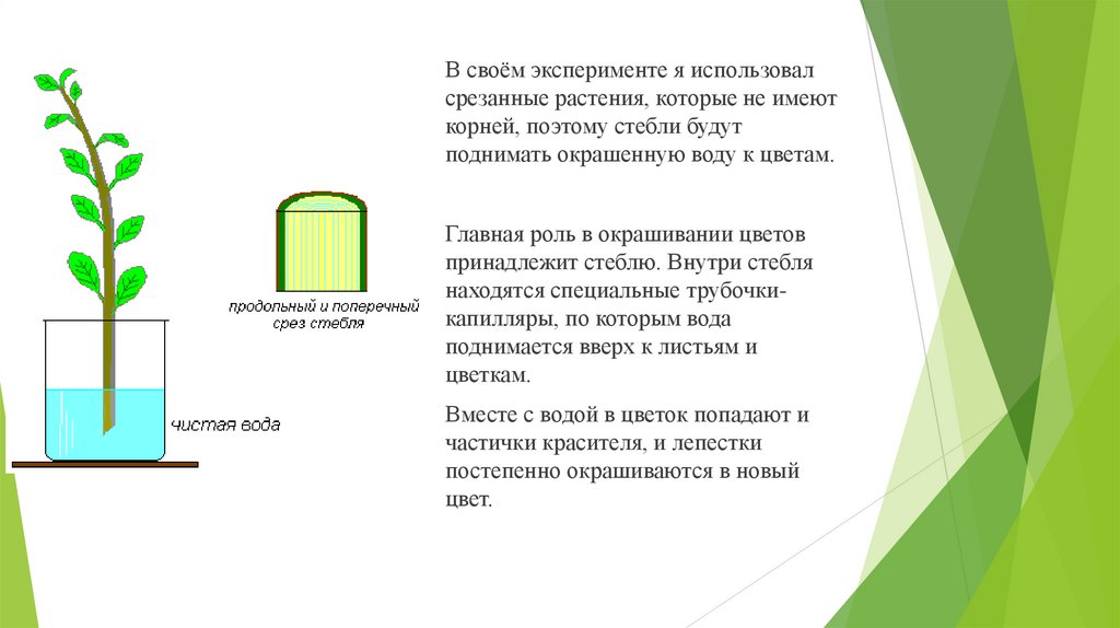 В своём эксперименте я использовалсрезанные растения, которые не имеют