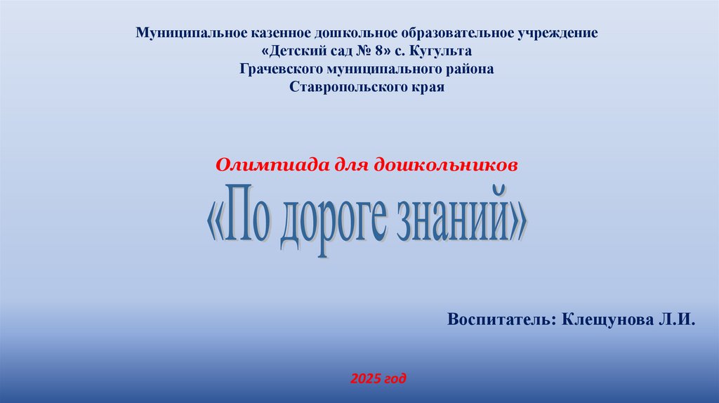 Муниципальное казенное дошкольное образовательное учреждение«Детский сад № 8» с. Кугульта