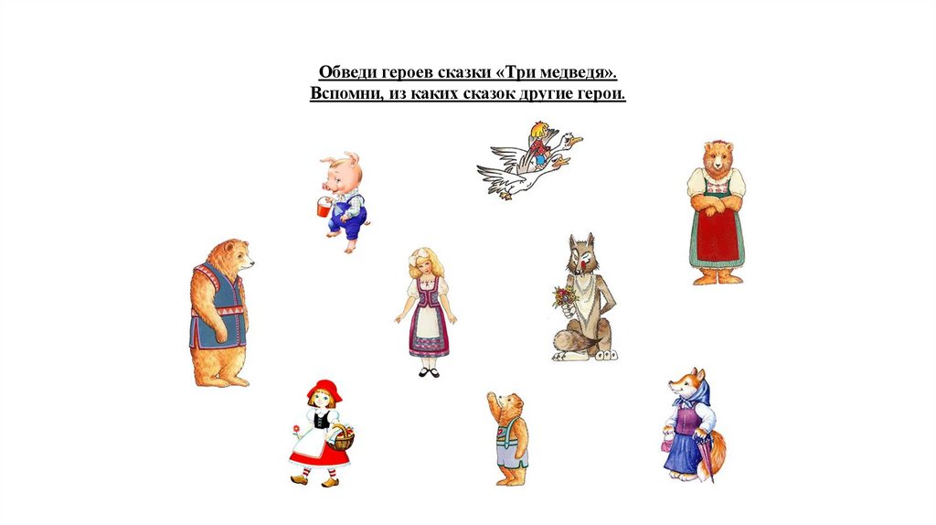 Обведи героев сказки «Три медведя».Вспомни, из каких сказок другие герои.