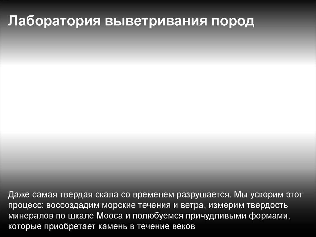Лаборатория выветривания породДаже самая твердая скала со временем разрушается. Мы ускорим этот