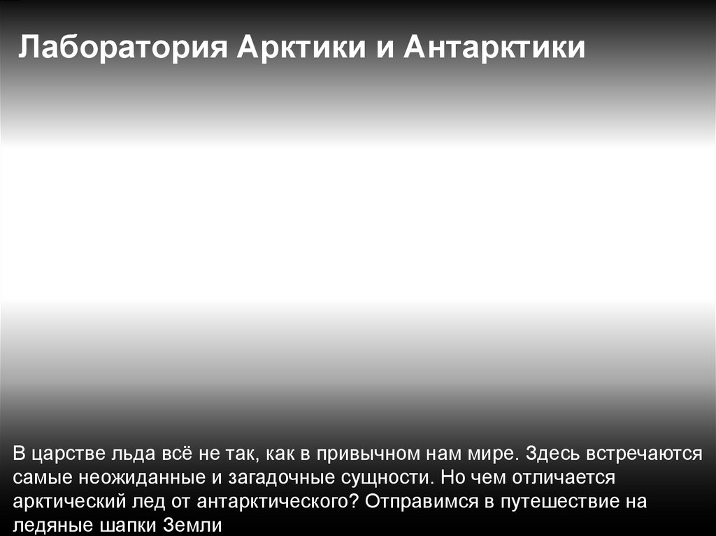Лаборатория Арктики и АнтарктикиВ царстве льда всё не так, как в привычном нам мире. Здесь встречаются