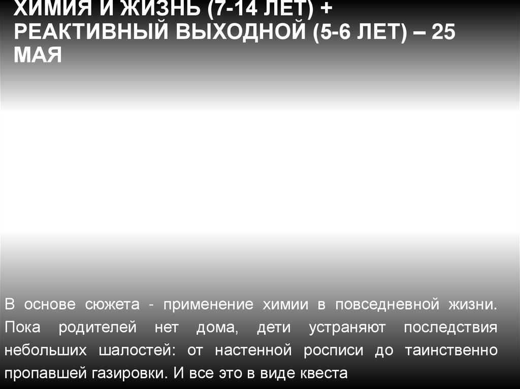 ХИМИЯ И ЖИЗНЬ (7-14 ЛЕТ) +РЕАКТИВНЫЙ ВЫХОДНОЙ (5-6 ЛЕТ) – 25