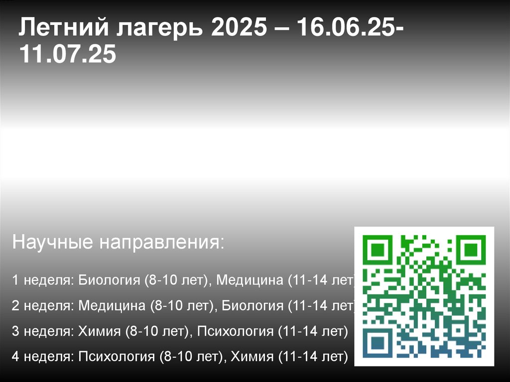 Летний лагерь 2025 – 16.06.2511.07.25Научные направления: