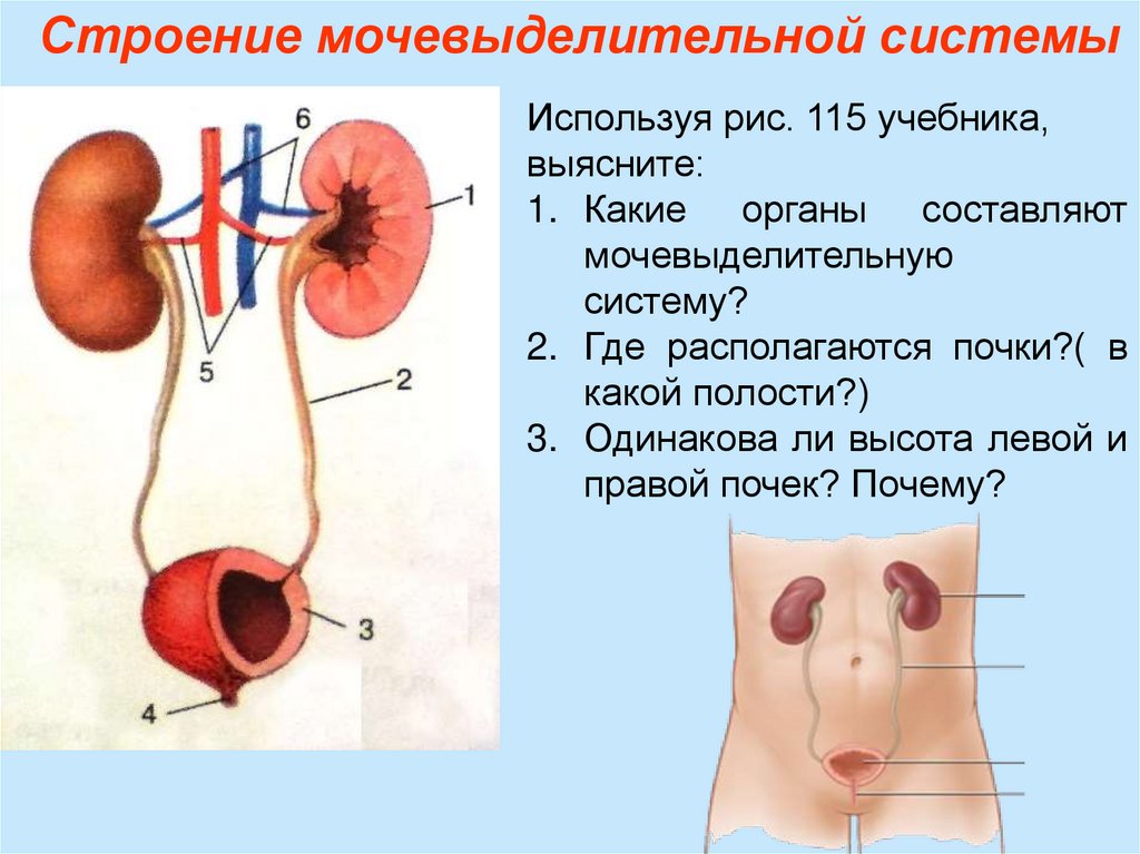 Строение мочевыделительной системыИспользуя рис. 115 учебника,
