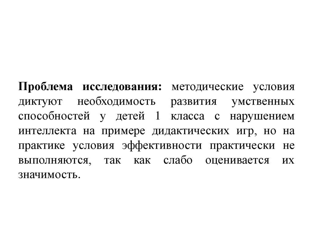 Проблема исследования: методические условиядиктуют необходимость развития умственных