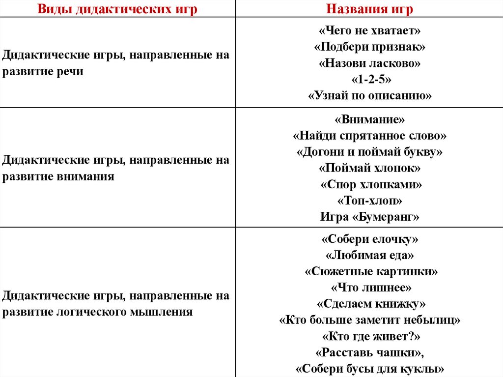 Виды дидактических игрНазвания игр