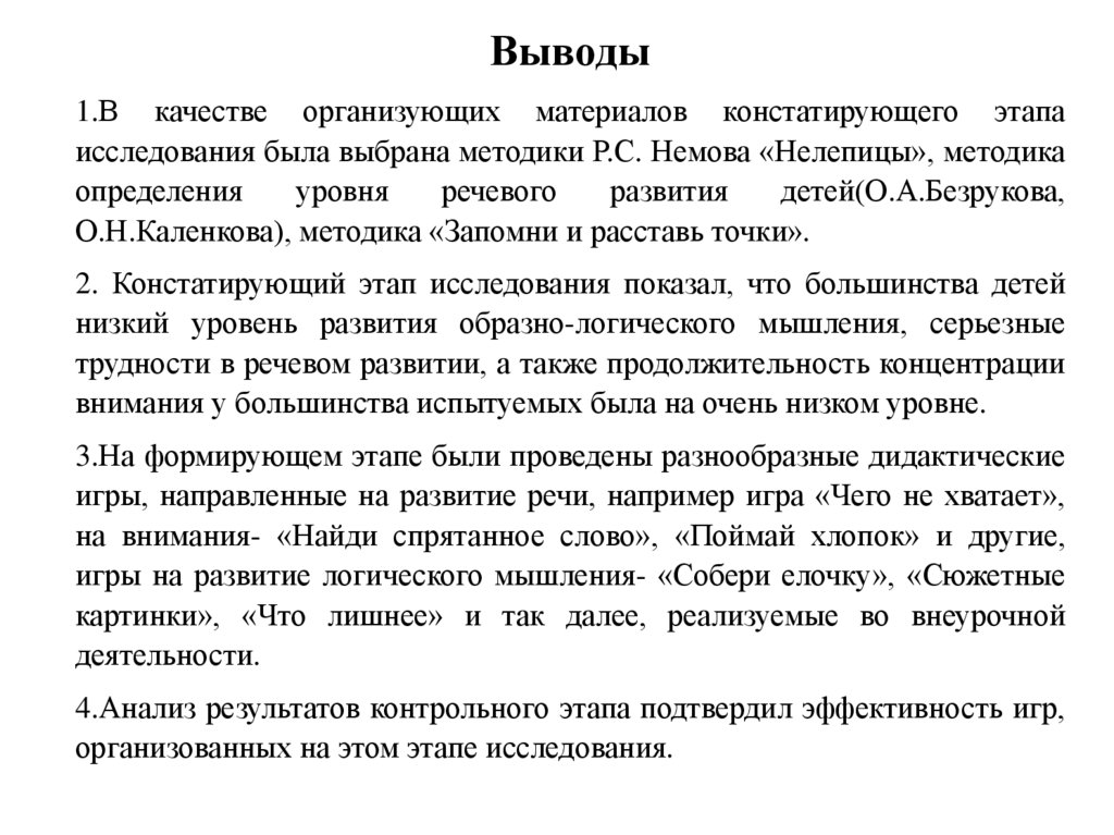 Выводы1.В качестве организующих материалов констатирующего этапа