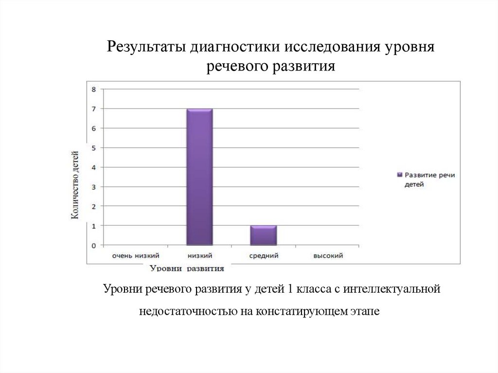 Уровни речевого развития у детей 1 класса с интеллектуальной
