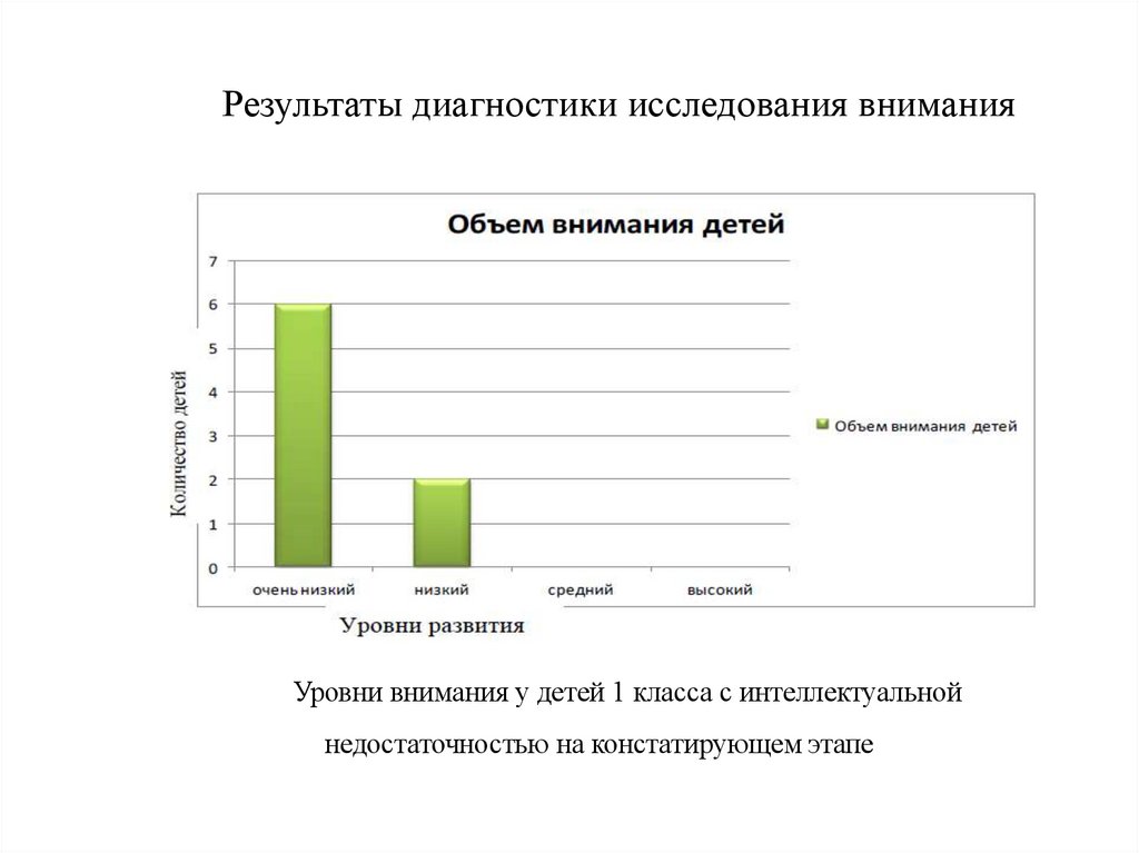 Результаты диагностики исследования вниманияУровни внимания у детей 1 класса с интеллектуальной