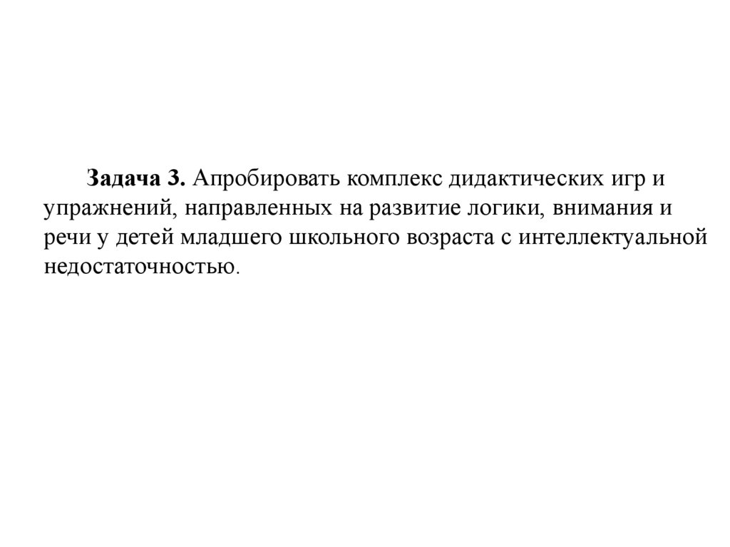 Задача 3. Апробировать комплекс дидактических игр иупражнений, направленных на развитие логики, внимания и