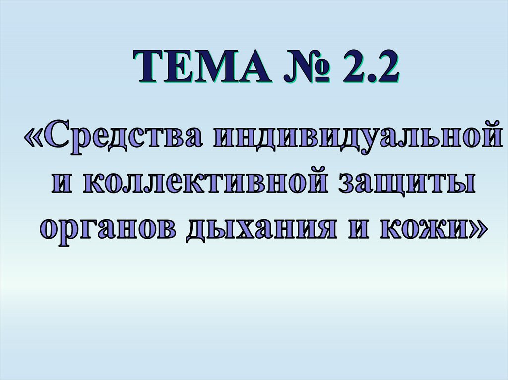 ТЕМА № 1.1 Средства индивидуальной и коллективной защиты органовдыхания и кожи.