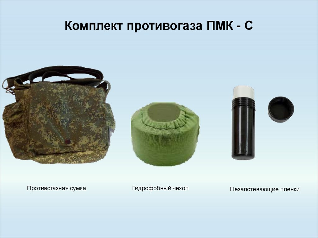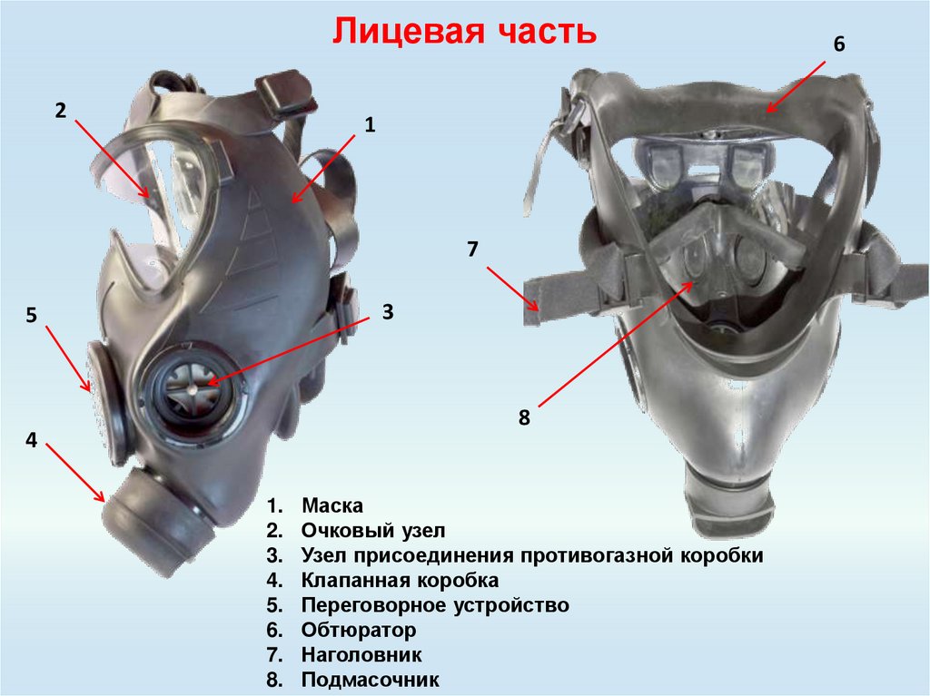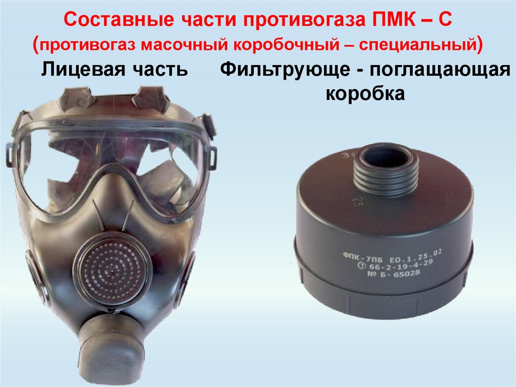 Составные части противогаза ПМК – С(противогаз масочный коробочный – специальный)