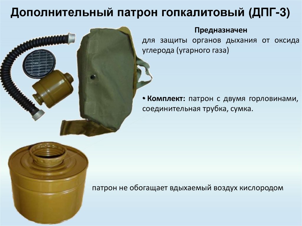 Дополнительный патрон гопкалитовый (ДПГ-3)Предназначен