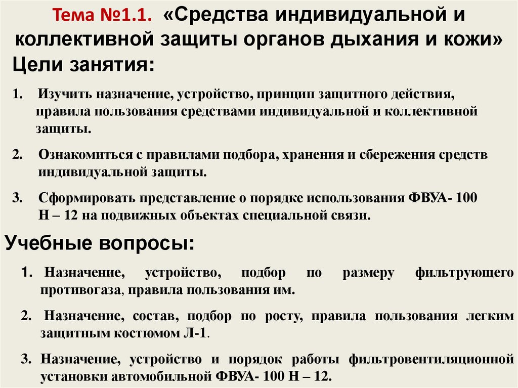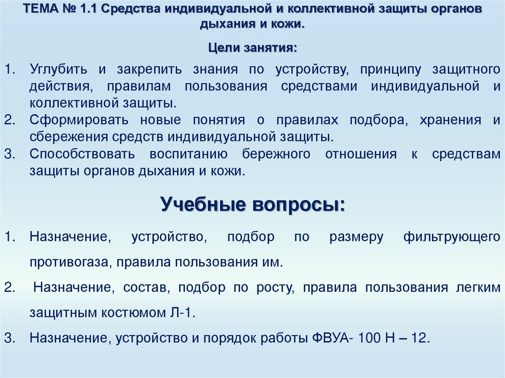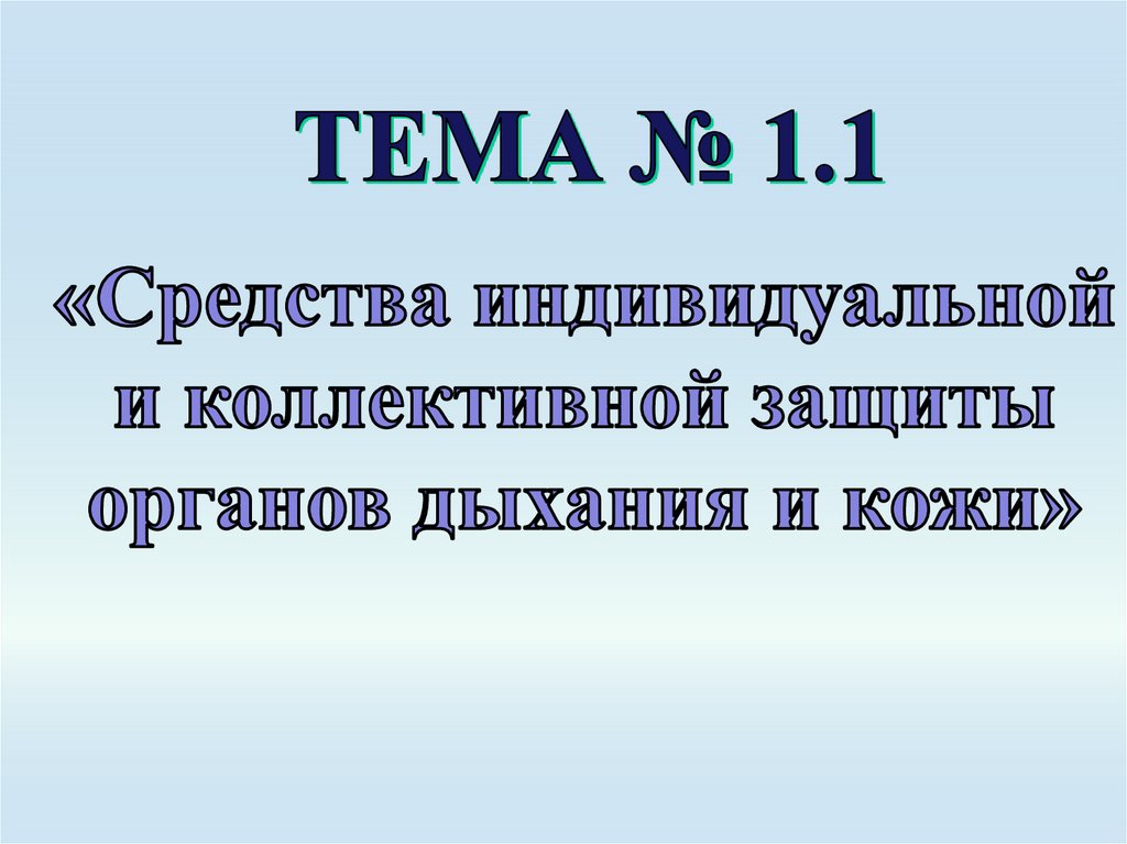 Тема №1.1. «Средства индивидуальной иколлективной защиты органов дыхания и кожи»
