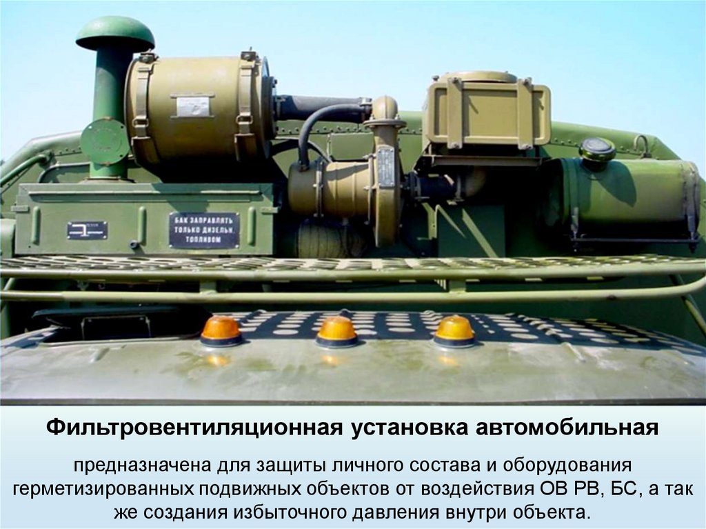 Фильтровентиляционная установка автомобильнаяпредназначена для защиты личного состава и оборудования