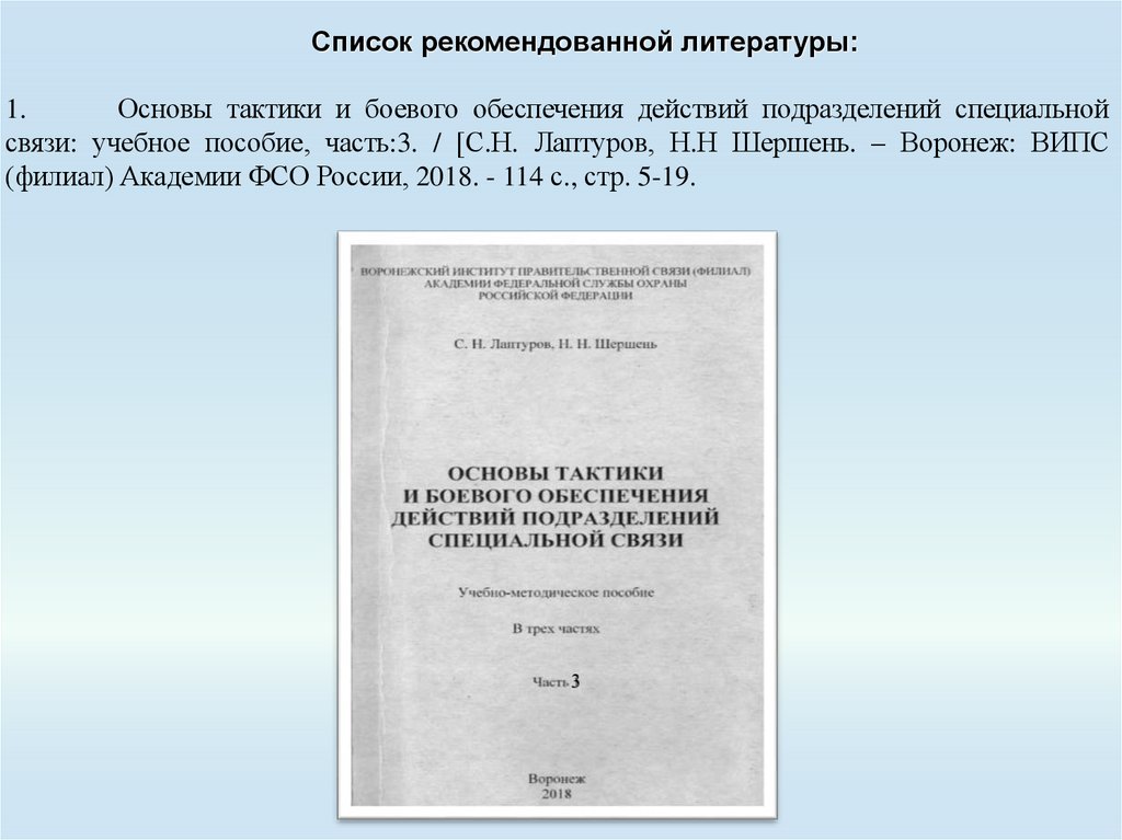 Основы тактики и боевого обеспечения действий подразделений специальной