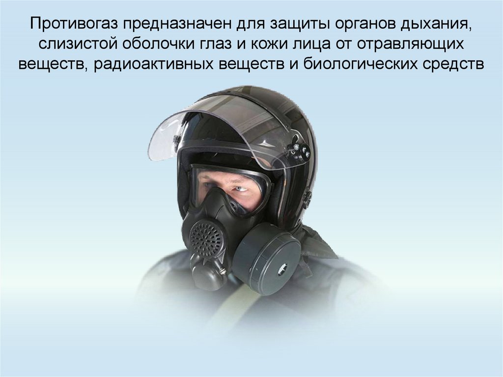 Противогаз предназначен для защиты органов дыхания,слизистой оболочки глаз и кожи лица от отравляющих