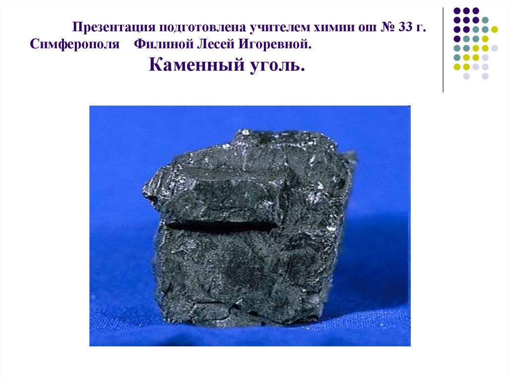 1. Презентация подготовлена учителем химии ош № 33 г. Симферополя Филиной Лесей Игоревной. Каменный уголь.
